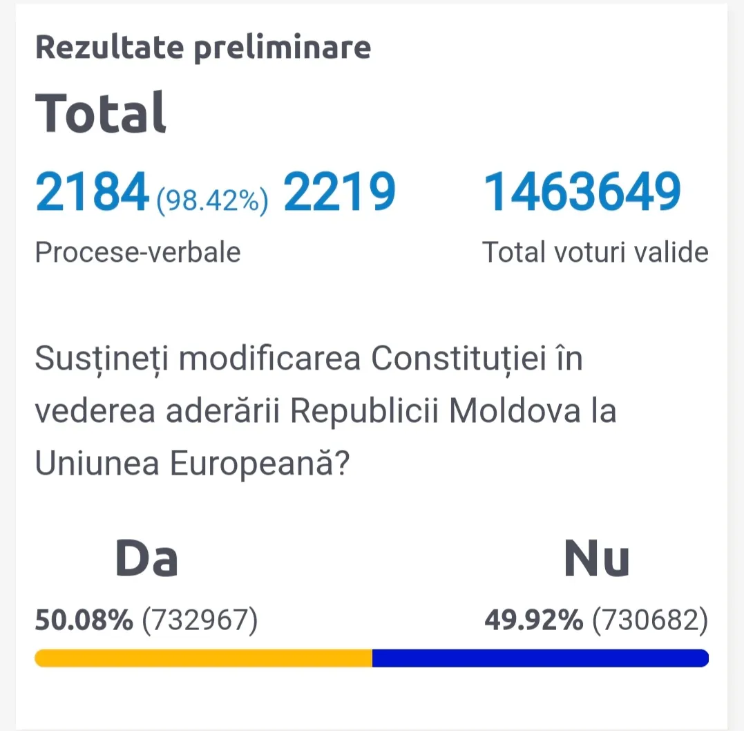 In a surprising turn during Moldova’s EU accession referendum, the YES option gained more votes than the NO, despite initial reports from the Central Electoral Commission (CEC) showing a majority against it.
