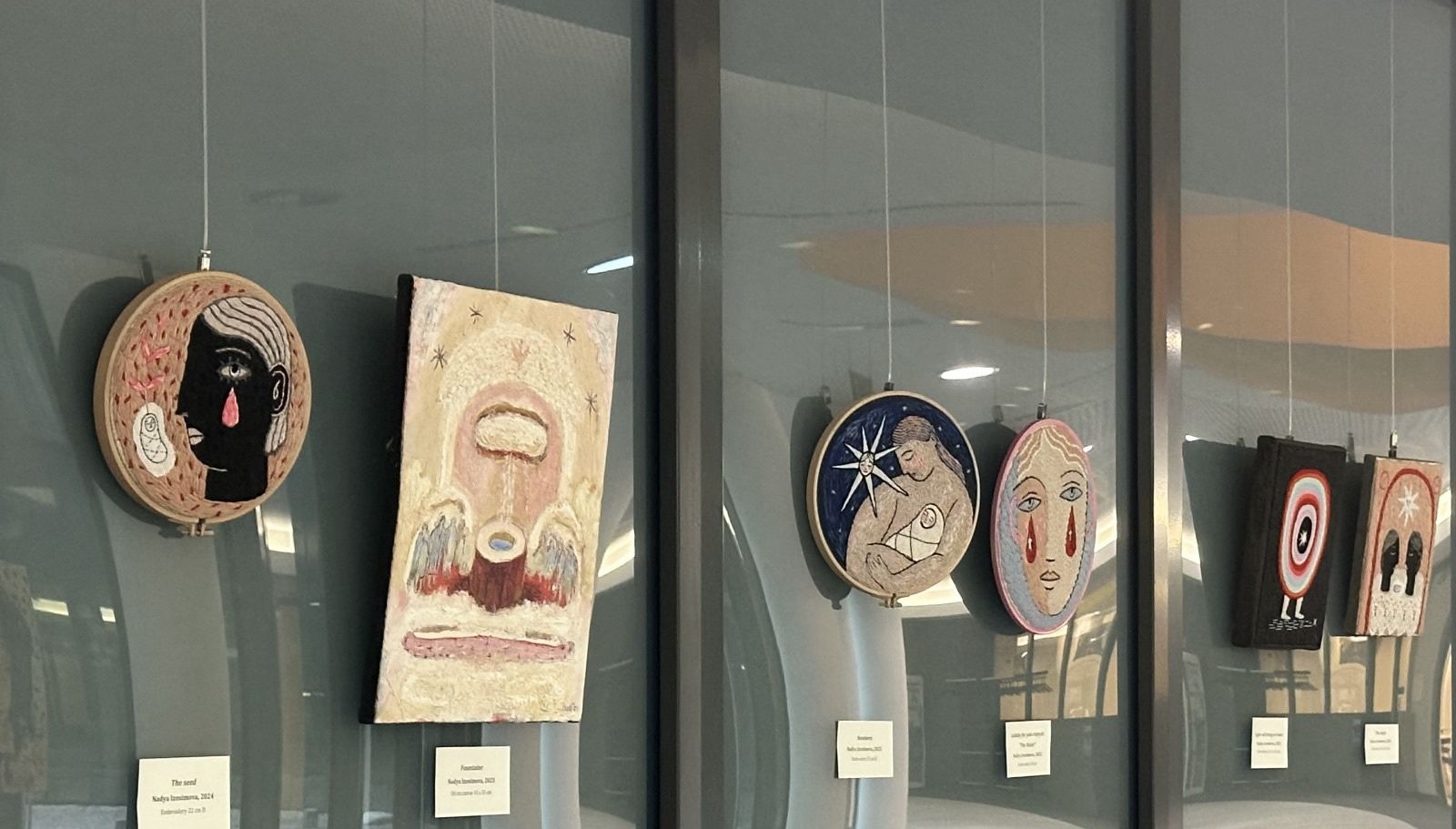 The second section, LIGHT WILL BRING ME HOME by Nadya Izosimova, blends painting, graphics, and embroidery in a poetic exploration of memory, folklore, and spirituality.