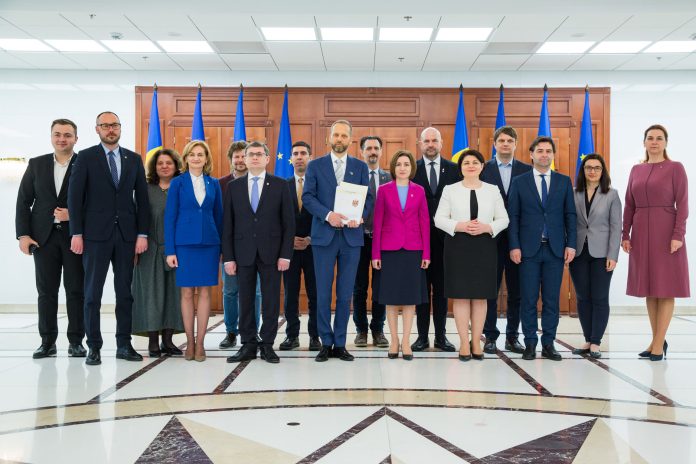 The Republic of Moldova has officially handed over to the EU the first completed questionnaire, after submitting the application for joining the EU. The ceremony took place today, April 22, in the Presidency, in the presence of the EU Ambassador to Chisinau, Jānis Mažeiks, the President of the country, Maia Sandu, the Prime Minister, Natalia Gavrilița, the President of the Parliament, Igor Grosu, and the members of the Commission for Integration in the European Union.
