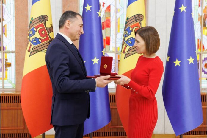 Maia Sandu thanked the Azerbaijani ambassador for the efforts undertaken to consolidate relations between the two countries and, as a sign of high appreciation for the good cooperation between Moldova and Azerbaijan, as well as for Moldova’s support during the crisis, awarded Gudsi Osmanov with the “Order of Honor”.