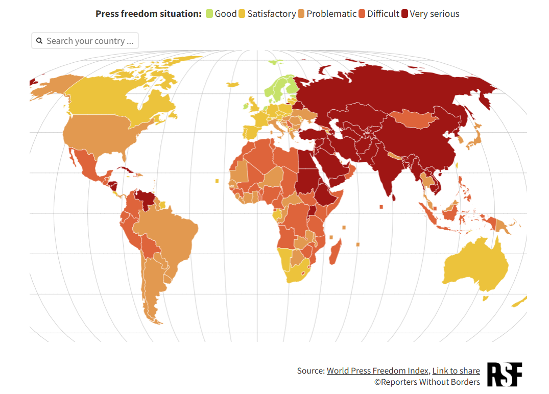In the United States, press freedom has also deteriorated, especially during Donald Trump’s second term. Economic pressure continues to threaten journalism, with over 60% of journalists reporting financial hardship.