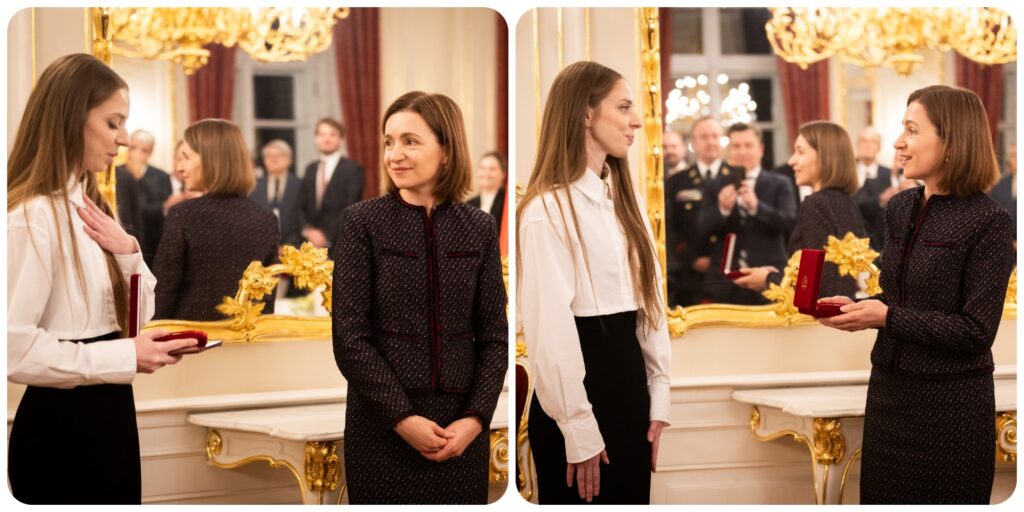 “I had the pleasure of seeing Alina Nanu, the prima ballerina of the National Theater in Prague, last year in the performance of ‘Romeo and Juliet’ during my visit to the Czech Republic. This year, I had the distinct honor of conferring upon her the honorary title of ‘Artist al Poporului’ (Artist of the People) at a dinner hosted by the President of the Czech Republic, Petr Pavel,” President Sandu shared on her Facebook page.