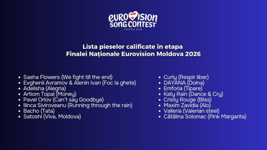 On January 17, 2026, Arena Chisinau will host the National Eurovision Final, where 16 participants will compete for the right to represent the Republic of Moldova at the Eurovision Song Contest. For the first time, the national selection will feature a large scale show that includes not only the contestants, but also artists who have already gained international recognition at Eurovision, Cancan.md reports.
